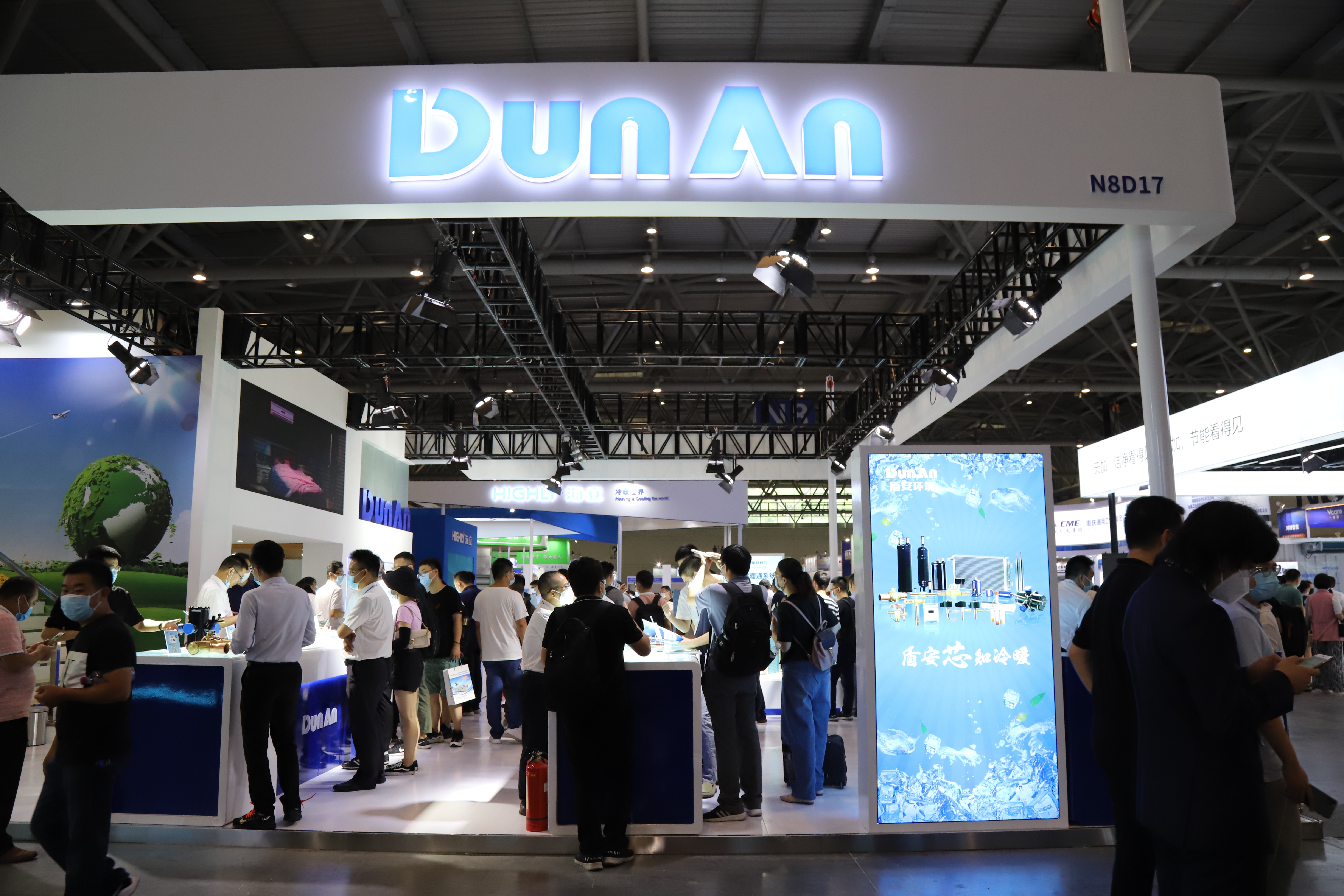 今天,第三十一屆中國制冷展在重慶國際博覽中心隆重開幕。這場因疫情延期了數月的行業頂級盛會,吸引了近500家企業和機構參展。展會首日,位于N8D17的盾安環境展臺現場人氣爆棚。 本次展會,盾安環境以“盾安芯 知冷暖”為主題,四大展示區域分別展出盾安環境制冷閥件、換熱器、多聯機、模塊機及新能源汽車熱管理的明星產品,為客戶提供節能型制冷系統整體解決方案。 “三劍客”實力打call 在重磅推出的一系列商用領域重磅產品中,最受矚目的無疑是盾安“三劍客”,吸引了諸多行業客戶前來了解咨詢。 超靜音高耐久N型電子膨脹閥,微米級精度,帶來冷暖與靜音的全方位舒適體驗。P型內平衡式電子膨脹閥,個頭小、能力強,獨特的內平衡結構設計,為多聯機、熱泵模塊機提供更緊湊、更節能、更可靠的解決方案,也是今年的制冷展創新產品獎獲得者。不銹鋼四通閥采用不銹鋼主體,重量輕、溫率低、傳熱小、耐候性好、高流通能力,全面提高客戶整機能效與可靠性。展會現場,盾安技術人員為客戶耐心講解。 霸氣的換熱器產品也吸引了許多行業客戶駐足咨詢。 新老朋友齊聚一堂,溝通合作,共謀發展。 保護大氣實力擔當 臭氧層被譽為地球上生物生存繁衍的保護傘,作為全球制冷元器件行業龍頭企業,盾安環境一直以來積極緊隨環保部為保護臭氧層而努力。目前,盾安環境已完成R32冷媒應用研究、R32冷媒的示范項目等相關工作,在冷凍冷藏領域積極推動了CO2的應用。并于2017年獲得聯合國開發計劃署等五部聯合頒發的“為保護臭氧層做出寶貴貢獻和努力的接觸貢獻單位”認可榮譽證書。 在本次主辦方特設“臭氧氣候技術路演和論壇”上,盾安環境展示了多個新冷媒應用閥件,與行業人士分享最新的技術成果。 生態環境部大氣環境司一級巡視員李培在臭氧路演展臺與盾安環境總裁李建軍親切交談 8月20日,盾安環境技術中心資深專家史俊茹在“臭氧氣候技術路演和論壇”發表主題演講《低GWP制冷劑產品解決方案》,介紹盾安在更低GWP、高效節能替代技術的最新應用成果和解決方案。